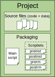 Usually, a packaging module contains a main script/configuration and several scriptlets:- preinst: scriptlet executed before the package installation